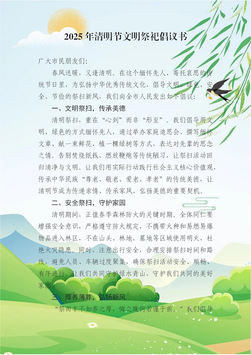 2025年清明節(jié)文明祭祀倡議書